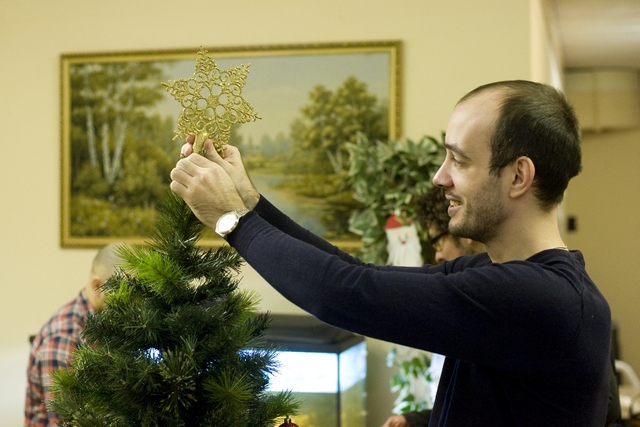 Другой житель интерната, Вадим Маров, признался, что к праздникам всегда готовится тщательно. Вот и сегодня он достал свой выходной костюм, белые ботинки и «парадные» очки. «Я живу здесь с 2003 года, хотя у меня был дом, семья. Но иногда жизнь складывается так, что приходится ее принимать такой, какая она есть, – улыбается Вадим Александрович. – Нам нельзя унывать. Конечно, мы ждем праздников, ведь в эти дни можно потанцевать у елки, попеть частушки, почувствовать себя молодыми…»
