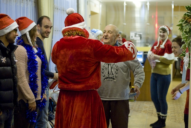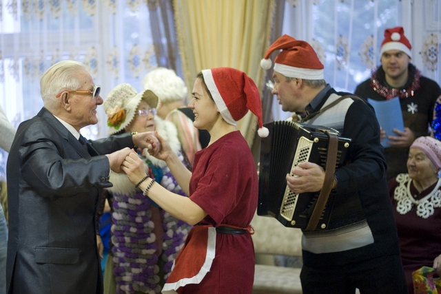 Накануне Нового года жители дома-интерната ветеранов войны и труда в Лесном, выйдя из комнат, были приятно удивлены. Они увидели нарядную елочку и Деда Мороза со Снегурочкой, приглашавших их на праздничный завтрак. Кто-то со слезами на глазах принимался благодарить организовавших праздник волонтеров группы «Мудрые дети», кто-то бежал прихорашиваться к празднику.