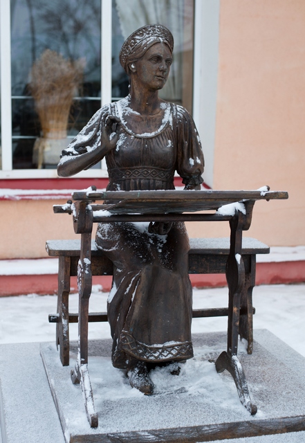 Внимание гостей города привлекает необычный бронзовый памятник женщине-вышивальщице, сидящей за пяльцами, открытый ко Дню Пучежа в 2015 году. «Идея памятника возникла у нашего отца еще в 1990-е годы. После его ухода из жизни идею воплотил мой брат Михаил, – рассказывает другой сын основателя предприятия, коммерческий директор Сергей Голованов. – Наш отец в художественный промысел пришел из сельского хозяйства, он выпускник Ульяновского сельхозинститута, волей случая оказавшийся в Пучеже. Он полюбил город и в годы рыночных реформ решил спасти его бренд – строчку, создав новое предприятие». Кстати, его необычное название отчасти обосновано исторически. До революции купцы плыли по Волге и торговали европейскими товарами, в том числе ажурной женской одеждой из Франции, понравившейся пучежанам.