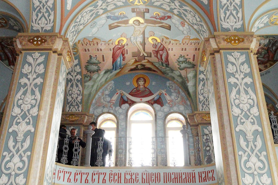 Сначала Ольга Вьюгина больше работала в стиле лаковой миниатюры, а потом сестра пригласила ее в иконописные мастерские. «Было интересно, но очень сложно переходить с мелкого на крупное – несколько раз хотела бросить, - рассказывает художница. - А потом понравилось - отличный коллектив, интересная работа в разных храмах страны…»