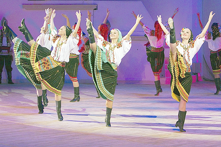 Но составить впечатление о богатстве обширнейшего репертуара ансамбля зрители могли. Танцы следовали один за другим, и каждый был незабываем: сюита греческих танцев "Сиртаки", старинная городская кадриль, калмыцкий танец, который исполняли три артиста в черных национальных костюмах, похожие на могучих орлов. Много аплодисментов собрал танец бессарабских цыган… Особенно, судя по долго не смолкавшим овациям, зрителям приглянулась сюита молдавских танцев: "Хора", "Чиокырлия", "Жок". Зал несколько минут не отпускал танцоров.