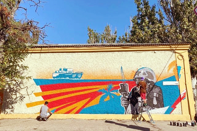 В Ялте, на улице Киевской, появился арт-объект с изображением летчика советской авиации, в Феодосии на стене дома по улице Победы – граффити, посвященное истории теплохода "Армения", в Симферополе – мурал (так называют живопись на архитектурных сооружениях. – М. С.) на стене Крымского республиканского клинического госпиталя ветеранов войн. Также граффити можно увидеть на керченской набережной (там изображен воин, который сражается с немецкими танками) и на стене Судакского дома культуры, где размещен мурал, посвященный возвращению солдат домой...