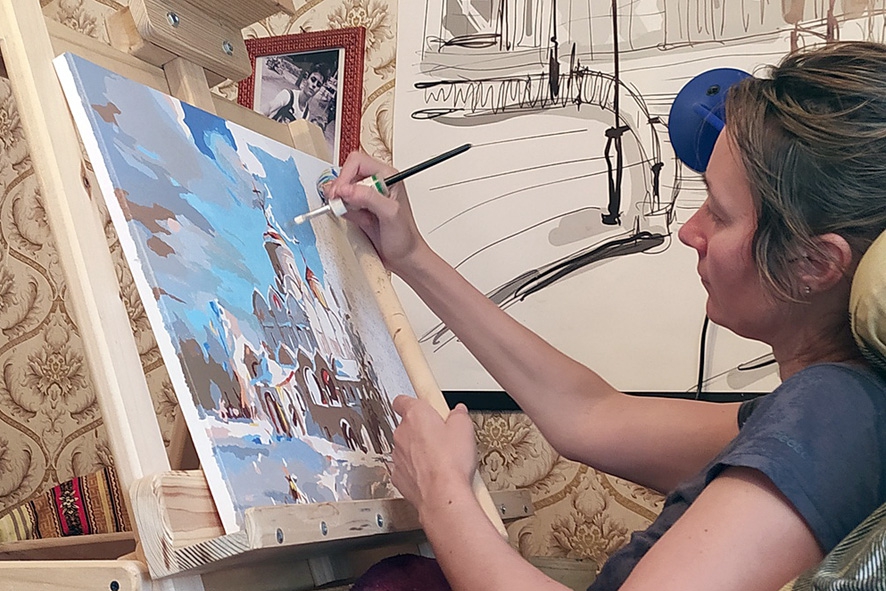 Ольга активно разрабатывает руки – мечтает рисовать, как раньше. В той, другой, жизни она работала в Палехских мастерских, расписывала стены храмов. После аварии женщина не могла рисовать совсем. Сейчас Ольга уверенно работает правой рукой и понемножку – левой. Каждому своему новому достижению художница радуется, как ребенок, и вместе с ней ее близкие – родители, муж, сыновья.