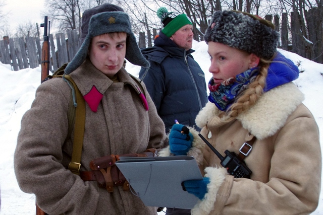 Молодые парни в теплых войлочных шинелях и валенках перепрыгивали с ноги на ногу, шутили, пили горячий чай из пластиковых стаканчиков, помогали друг другу поправлять амуницию. Кстати, надеть правильно ремень, рюкзак, прикрепить фляжку – настоящее искусство, которое не всем под силу с первого раза. Члены съемочной группы устраивают для молодых бойцов мастерклассы по правильной экипировке. «Я думал, кино снимать легко, а оказалось так сложно! – смеется один из киргизских студентов. – Но мы здесь уже пять дней, кое-чему научились. Одеваться уже сами можем. Всё очень интересно! Особенно нам, студентам, нравится, что нас бесплатным чаем поят».