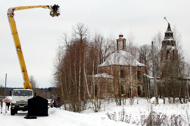 Чуть дальше, как большая яркая луна, светил с вышки огромный прожектор. С другой вышки, поставленной недалеко от полуразрушенного храма с покосившимся крестом, велись съемки общих планов, которые потом войдут в фильм. Местные жители, улыбаясь и шутливо переговариваясь друг с другом, вышли на улицу понаблюдать за съемками.