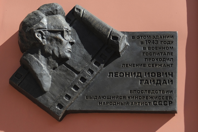 А день спустя на здании школы № 49, что на улице 1-й Меланжевой, открыта мемориальная доска в память о народном артисте СССР, великом кинорежиссере Леониде Гайдае. В 1943 году создатель многих незабываемых кинокомедий полгода лечился в эвакогоспитале № 1386, штаб которого размещался в этом здании. Отсюда демобилизовался на родину, в Иркутск.