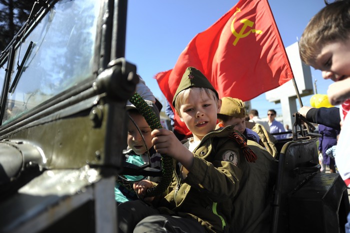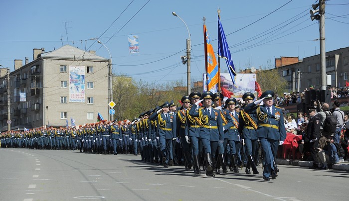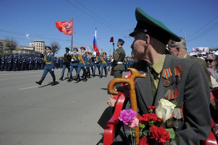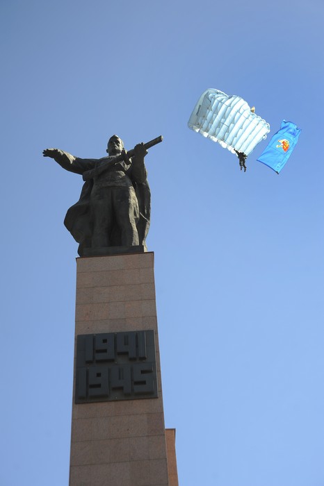 Уже не первый год в День Победы стоит прекрасная погода. Не подкачала она и на этот раз: сверкали на солнце начищенные до блеска сапоги солдат, которые выстроились в ряд перед памятником Героям фронта и тыла, сияла заново покрашенная и чисто вымытая военная техника.