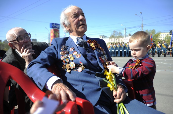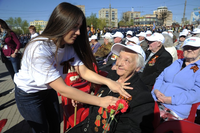 Ивановцев поздравил Павел Коньков, а также известный актер театра и кино Игорь Ливанов. Но главными, самыми почетными гостями были, конечно же, ветераны. Николай Брезгин добровольно ушел на фронт 17-летним мальчишкой, участвовал в боях под Козельском, воевал на Западном, Цент ральном фронтах, а Победу встретил под Берлином. Вспоминая 9 мая 1945 года, он не мог сдержать слез: «Это были восторг, радость, счастье, которые невозможно описать словами. Мы все плакали. А на следующий день я написал письмо домой со словами: «Радуйся, мама, твой сынок, живой».