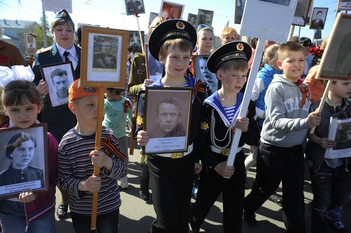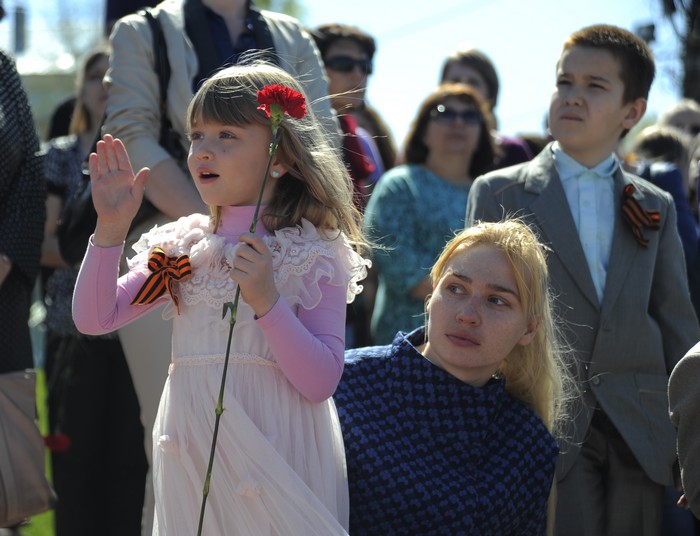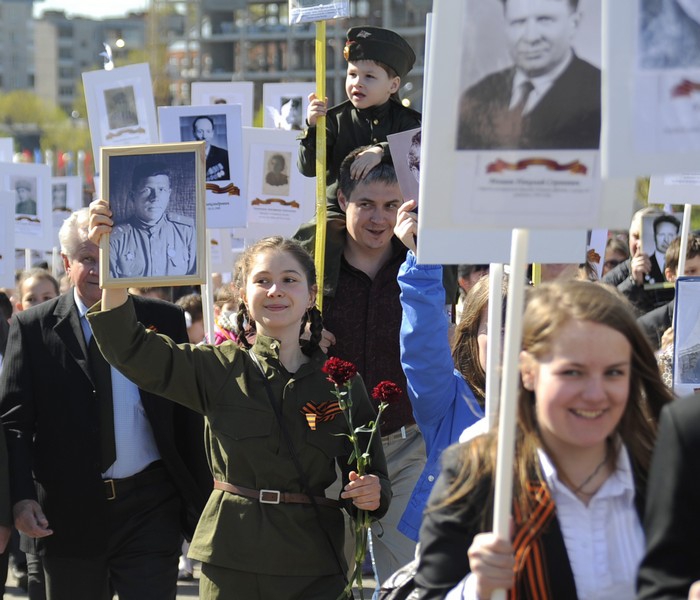 Но предшественником парада стала акция «Бессмертный полк»: из-за поворота перед Соковским мостом показались люди с фотографиями в руках. Они несли портреты своих предков, которые участвовали в Великой Отечественной. И этот живой поток был нескончаем. Люди шли молча, многие вытирали слезы.