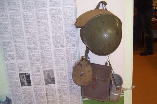 На стенде – трофейные немецкие каска и бытовые принадлежности солдата вермахта. Это дар односельчанина-фронтовика, бывшего разведчика Петра Морозова.