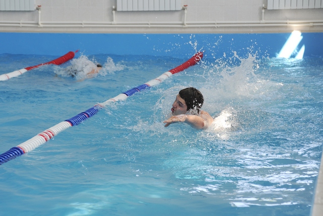 Чаша 12,5 х 6 метров разделена на три плавательные дорожки. На объекте установлены современные системы очистки и подогрева воды. Никакой хлорки. Для отслеживания качества воды в штат школы введена отдельная должность лаборанта.