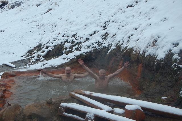 Теплая ванна среди снега и льда. Николай Крупин и Сергей Репин получили незабываемое удовольствие.
