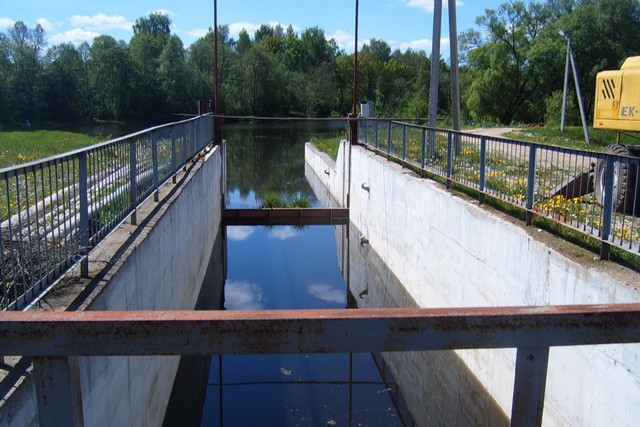…Мы стоим у нового бетонного шлюза, реконструкция которого завершилась в 2007 году. Сегодня сюда могут зайти только моторка или небольшой катер. Редко проходит шлюзование и с туристами. За механизмами нужен регулярный уход. Их действия тщательно проверяются. Следят и за состоянием плотины. На случай ЧП подготовлены запасы гравия и пиломатериалов.