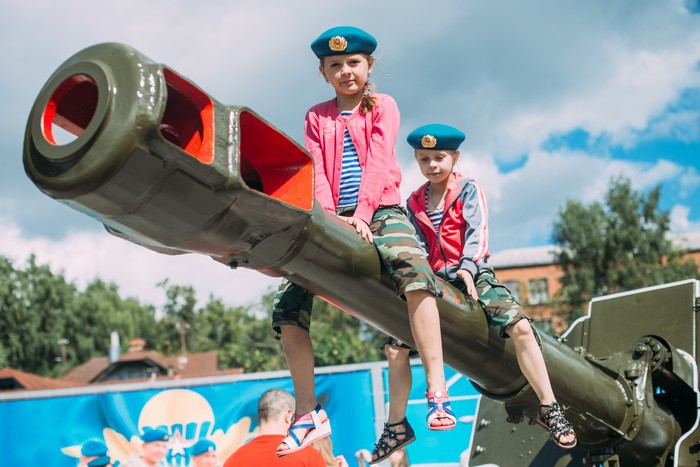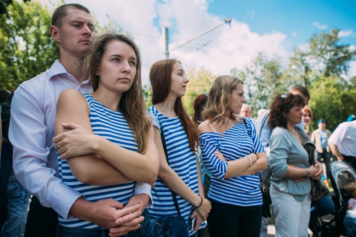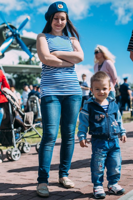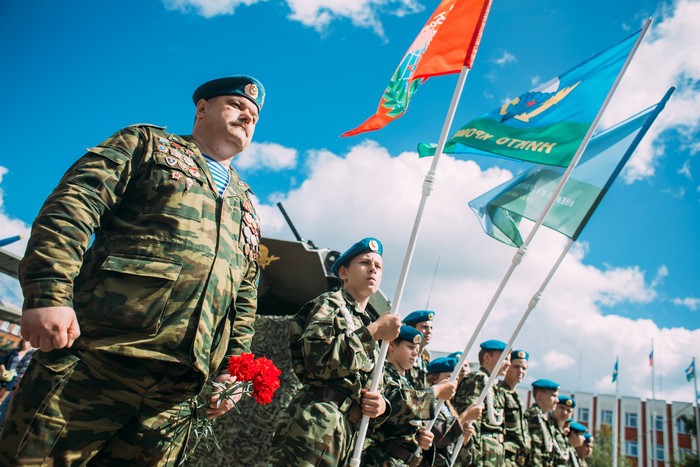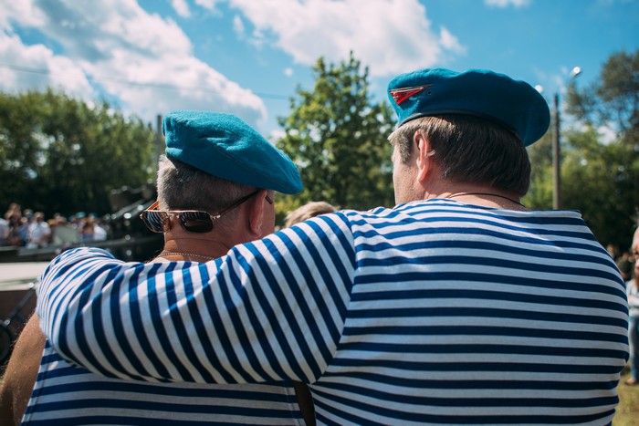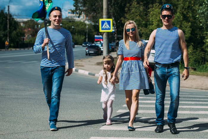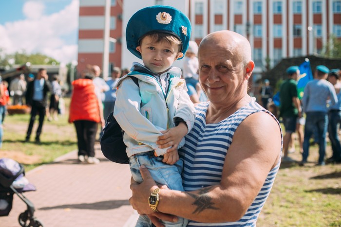 Десантники приводят на праздник и жен, и детей. Малыши в тельняшках и беретах выглядят особенно трогательно. Ветераны Афганистана, Чечни, недавние дембеля, даже участники Великой Отечественной войны, убеленные сединами, братаются, обнимаются и радуются, как дети, при виде своих старых знакомых. Тимофей Давлятшин, полковник в отставке, встречает здесь своих сослуживцев со всей страны.