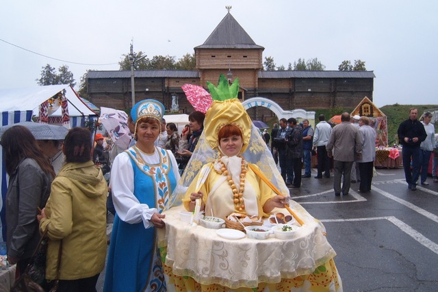 А уж угощения из полезного овоща были на любой вкус: пирожки всех размеров и видов, добавка к мясным блюдам, множество наливок… Биб лиотекарь Татьяна Чухлова из Мыта Верхнеландеховского района выступила в роли лукового офени, несущего короб с угощениями. Не было отбою от желающих отведать яства из рук этой красавицы. Ее подруга Маргарита Худякова рассказала, что Мытский центр культуры и досуга участвует во многих межрайонных ярмарках.