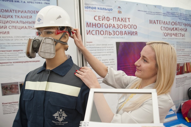Представители нашего политехнического университета показали на традиционной выставке в рамках форума огнезащитные костюмы из модифицированного волокна для спасателей, парашютистов, сварщиков, пожарных. Костюм не горит в огне и обладает гидрофобными свойствами. К тому же он биостоек (не подвержен воздействию бактерий и патогенных грибов). У пожарных после испытаний появились пожелания: увеличить двигательную функциональность, водоотталкиваемость и уменьшить вес. Пока костюмы для пожарных производят из импортного волокна, хотя наши ткани дешевле на 30 процентов. Они создаются на основе льна.