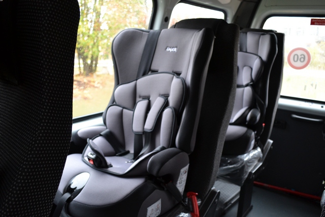 На сиденьях – специальные детскиеудерживающие кресла с ремнями безопасности.