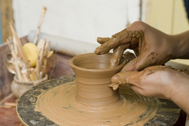 «Берем кусок глины, которая в разбавленном водой состоянии простояла 4-5 дней, хорошенечко проминаем ее пальцами и кладем в середину круга – так сказать, оцентровываем. Это очень важно для того, чтобы изделие не получилось кривым», – проводит мастер-класс Александр Хохлов. Его ноги приводят в движение круг, а руки бесформенному куску глины постепенно придают очертания будущей посуды. И здесь фантазия мастера безгранична: глину можно вытянуть и превратить в высокую кружку, а можно немного придавить и получится солонка.