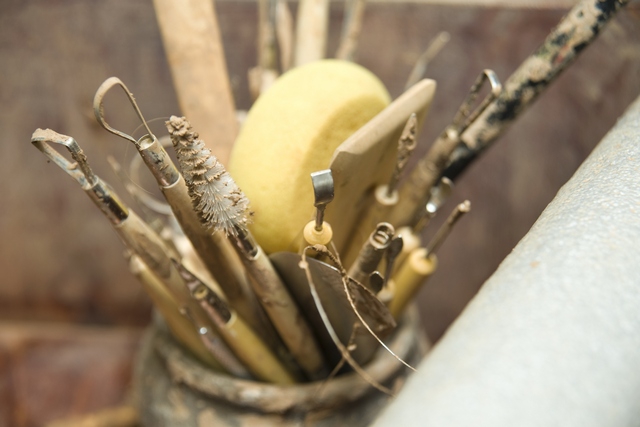 Некоторые инструменты для обработкиглиняных изделий мастер также сделал сам.