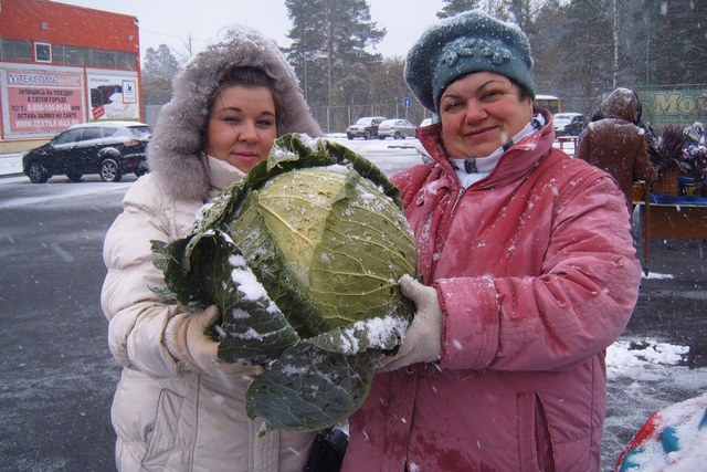 На капустной ярмарке в Ивановском районе был объявлен конкурс на самый крупный кочан. Победило Озерновское поселение: вилок одного из подворий потянул на 15 килограммов. Но и кочан, который привезли работники культуры Балахонковского поселения Светлана Родина и Екатерина Лобанова, впечатлил своим объемом и весом. Две женщины еле удерживали его в руках.