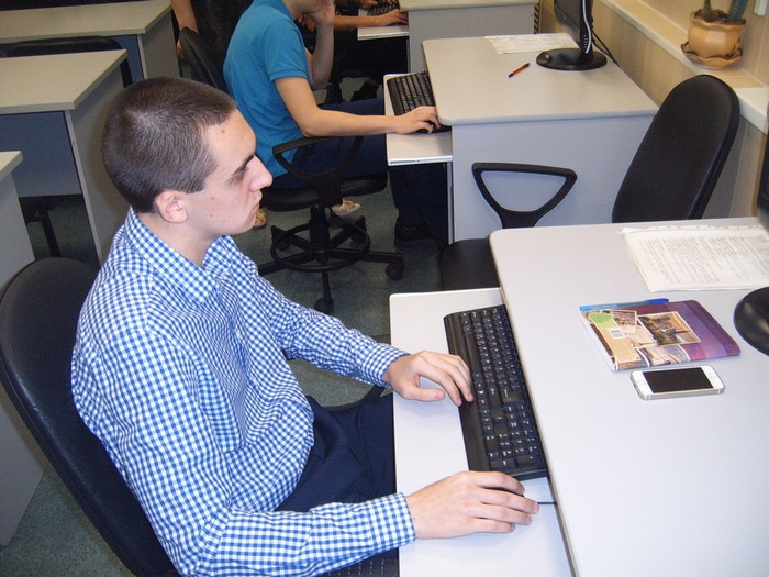 В кабинете информационных систем идет занятие. Третьекурсник Егор Коротков – кинешемец. Говорит, что с детства мечтает стать программистом. Кстати, оснащение персональными компьютерами в учебном заведении неплохое – их здесь 193. Есть даже аппаратно-программный комплекс «Читающая машина» и своя телестудия. Егору осталось учиться еще год. Компьютерщики сейчас требуются везде, и проблем с работой у него быть не должно.