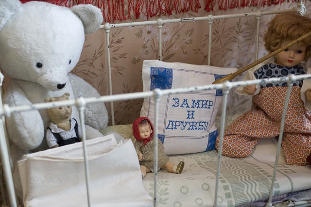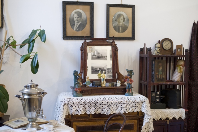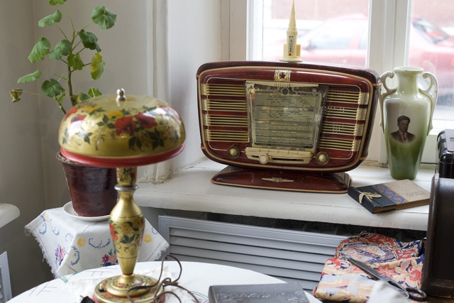 …Каждая комната живет своей отдельной жизнью и рассказывает об определенном периоде истории. Так, в первой легко уживаются портрет Ленина и иконы, словно одна эпоха сталкивается с другой, и в этом переломе возможно всё (имеются в виду непростые 30-е годы). Соседняя комната рассказывает об эпохе репрессий, комната напротив – о послевоенной адаптации страны. Здесь на стенах уже появляются обои, а многие из вещей кажутся знакомыми. От последней же, четвертой комнаты веет ностальгией по коммунальному прошлому, словно ее обитатели уже на пороге светлого будущего: готовятся к переезду в новую отдельную квартиру.