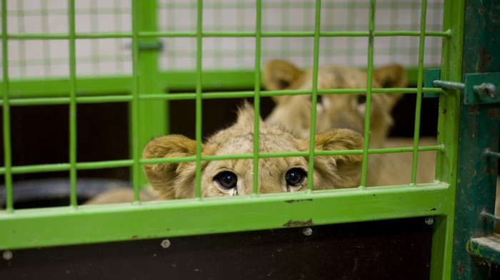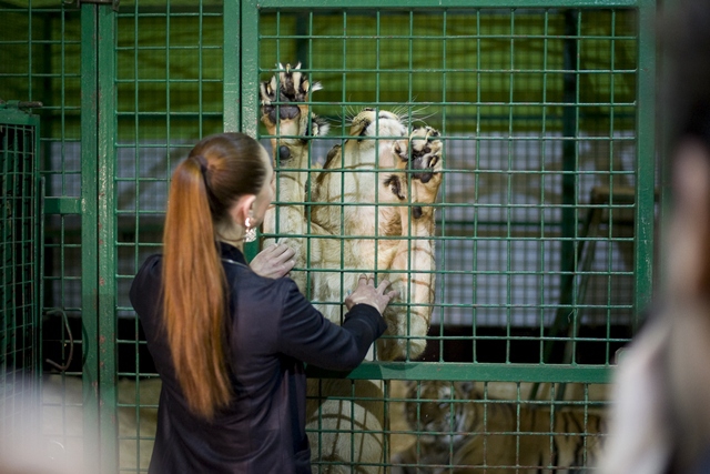 Молодые львы, которые только учатся быть артистами и пока не выходят на сцену, живут в отдельном вольере. Самому маленькому хищнику – около двух месяцев. Своего дрессировщика он принимает за папу и мяукает, когда тот, стоя рядом, не обращает на него внимания. Но стоит «папе» просунуть руку в решетку, как львенок прижимается к ней и зажмуривается от удовольствия.
