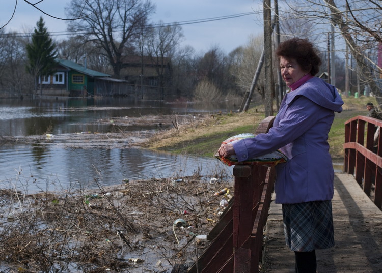 Огород семьи Гордеевых затоплен полностью. Деревянный дом пришлось приподнимать – вода ежегодно затапливала помещение, полы плесневели и гнили. Сейчас хозяин строит кирпичное здание вместо деревянного. «Огород-то просохнет, а дом – нет. Мы даже одно лето протапливали дом, чтобы всё высохло, но от гнили не избавиться. На ремонт власти выделили пять тысяч рублей. А что на них сделаешь?» – говорит Анна Гордеева. И Анна, и ее супруг работают на местной фабрике лаковой миниатюры, и их куда больше паводка заботит упадок отрасли. В разлив художники работают дома. Детей с левого берега тоже стараются в детсад не перевозить: есть возможность – оставляют дома.