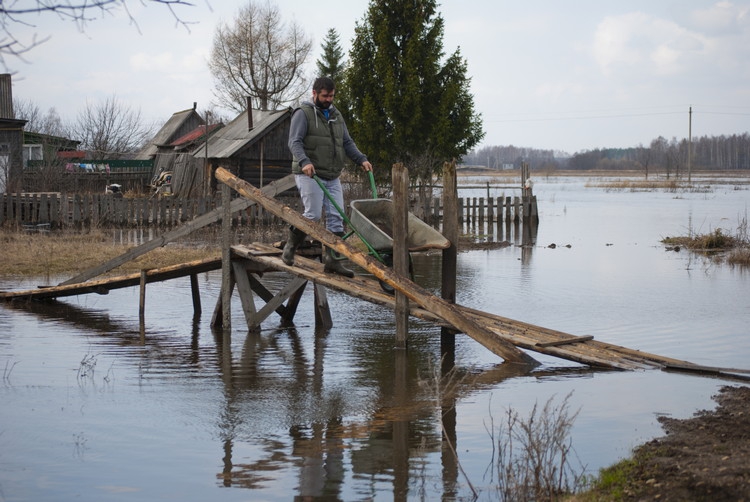 На соседней улице 80-летний Евгений Гагаев активно спасает своих курочек, оказавшихся под угрозой затопления: «Сидел, смотрел телевизор, не заметил, как река подошла. В окно глянул, а куры уже в воде ходят. Пришлось их в свинарник перенести, он у меня повыше». Но в целом подтопило не сильно: Николай Некрасов даже баню собирался топить, хотя обычно постройку заливает водой.