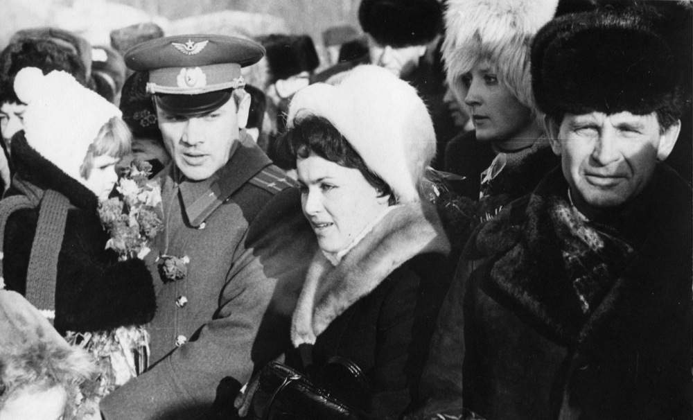 Космонавтов, прилетающих после выполнения задания, всегда торжественно встречают на Чкаловском аэродроме. Серёгинский полк стоял в оцеплении. Вот фото встречи Владимира Джанибекова и Олега Макарова после первого полета в январе 1978 года. Владимир Александрович смотрит на красавицу-жену.