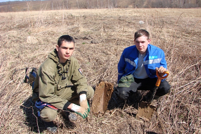 Владимир Сергеевич рассказал, как проходит поиск погибших бойцов. Первый метод – с помощью металлоискателя. Ведь погибший солдат имел стальную каску, оружие, на его одежде были металлические пуговицы, пряжка ремня. На эти предметы и реагирует металлоискатель. Однако места былых боев буквально начинены разного рода металлическими предметами – осколками, гильзами. Поэтому всё чаще сегодня ребята используют специальные саперные щупы. Если в «Долине смерти» щупы были относительно небольшими, то в Смоленской области, где останки находят в основном на глубине не менее полутора-двух метров в окопах, такие приспособления уже весьма внушительны.