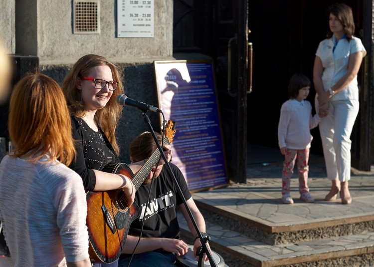 Музыка звучала и на площадке перед Музеем промышленности и искусства – там вживую играли и пели ивановские группы. Музыки было много и в самом музее: весь вечер она звучала в Белом зале в рамках концерта классической музыки, организованной совместно с Ивановским отделением «Ассоциации классического наследия». Там же, только чуть позже, всех желающих учила исполнять старинные танцы студия «Макама». Девушки и юноши в костюмах былых эпох смотрелись очень эффектно: зрителям казалось, что они попали в ожившее прошлое.