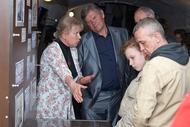 Но, наверное, главным событием вечера стало открытие в подземном переходе между музеями выставки, посвященной Году кино, под названием «Аттракцион счастья». Киноафиши «электротеатров», костюмы актеров – наших земляков, в которых они снимались в известных фильмах, вырезки из газет и множество других, не менее интересных вещей, которые становятся еще интереснее в необычном пространстве музейного перехода – всё это новая выставка. А вечером участников акции ожидало еще одно событие: презентация фильма «Меж двух времен», которая завершилась световым шоу Александра Королёва.