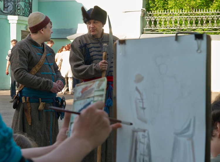 Музей ситца в этот вечер стал площадкой высокой моды. Свои коллекции в залах и на лестницах демонстрировали детский театр моды «Алиса» и студенты текстильного института. А во дворе музея все желающие могли поработать на настоящем ткацком станке. Там же, во дворике, ивановские реконструкторы из клуба «Белый отряд» охотно позировали студентам-художникам и рассказывали о той эпохе, которую представляли… Мастер-классы, книжная лавка, распродажа украшений ручной работы из стекла и металла и многие другие интересности сделали «Ночь музеев» незабываемой.