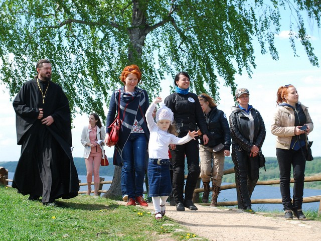 Маленькая дочка настоятеля Воскресенского собора отца Александра, встречавшего девушек на границе Ивановской и Костромской областей, сразу же влюбилась в паломниц и начала просить у папы купить мотоцикл. Другие подростки, заинтересовавшиеся своеобразным преподнесением православной темы, активно фотографировались с дамами.