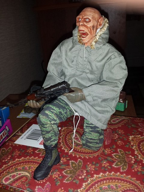 Сделанный на заказ зомби-военный Васяростом 30 сантиметров. Автомат Калашникова –из настоящей вороненой стали и красного дерева.