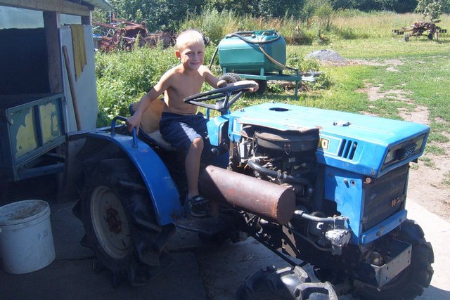 Сызмальства приучен к технике и дошкольник Толя Николаев. Он уже может провести по участку маленький огородный трактор. Приехавший на обед отец, Михаил, говорит, что у мальчишки талант будущего механизатора. А как ему не быть, если у папы, местного фермера, на усадьбе десятки разных сельхозмашин. Есть даже зерноуборочный комбайн.