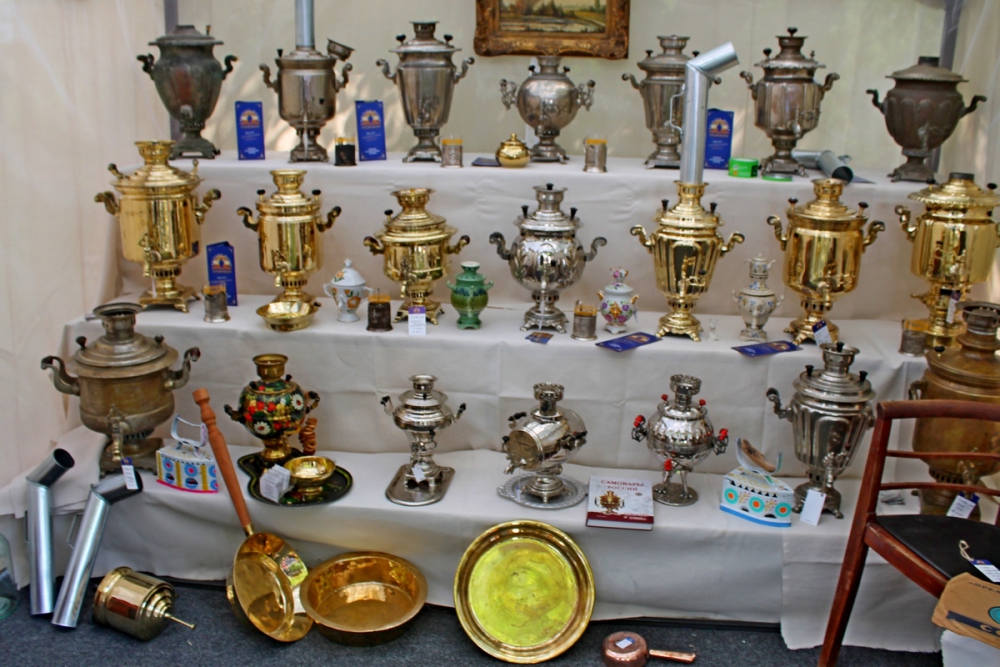 Почти три десятка самоваров привезли из Кировской области. Но не для продажи, а чтобы гости смогли полюбоваться на них. Было чему подивиться: – самовар «Петушок», самовар «Шар» самовар на … керосине, а самый большой – 40-литровый. Из него как раз и угощали чаем со смородиновым и малиновым листом, мелиссой, медом и мятой.
