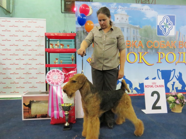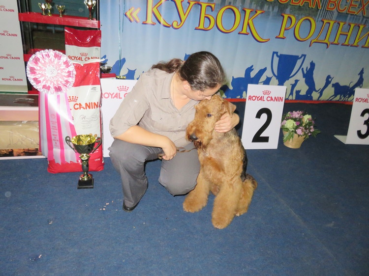 Лучшая собака выставки эрдельтерьер Олли с хозяйкой Надеждой Михеевой из Москвы.