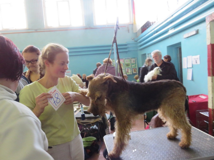 Москвичка Светлана Михеева готовит лейклент-терьера Бэрри к выставке.