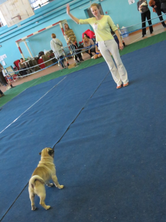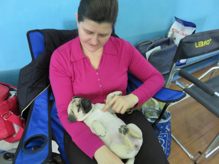 Среди участников оказалось много владельцев питомников. Одна из них - Юлианна Краснословодцева из Тутаева Ярославской области. На выставку она приехала с тремя мопсами: 3-х месячной Алексией, ее папой Фёдором и тетей Чипсой. А всего у нее в квартире проживают 10 мопсов. Как рассказывает женщина, в эту породу она влюбилась 13 лет назад, когда увидела на улице девочку с маленьким мопсом, а вечером ребенок с родителями и собакой оказались у нее дома: они срочно уезжали, мопса некуда было деть и через общих знакомых вышли на Юлианну.