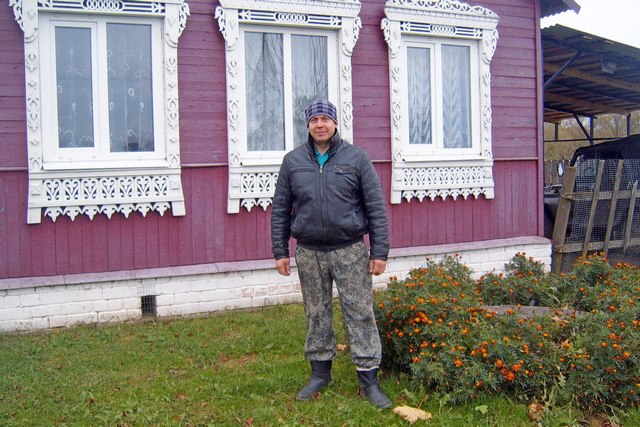 Пенсионера Владимира Козина я застал перегоняющим коров через улицу к своему подворью. Бывший председатель колхоза извинился и сообщил, что времени на разговор у него нет. Его зять Виктор Лукаев, тоже хозяин ЛПХ, живет по соседству. Молодой мужчина в ватнике разгружал привезенное с поля сено: «Мы живем отдельно от родителей, троих детей воспитываем…» – пояснил он на ходу.