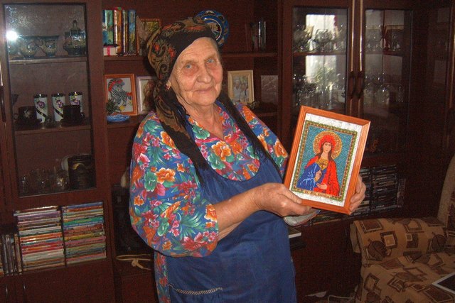 Эту иконку Божией матери Надежда Денежкина вышила для внучек Тани и Насти.