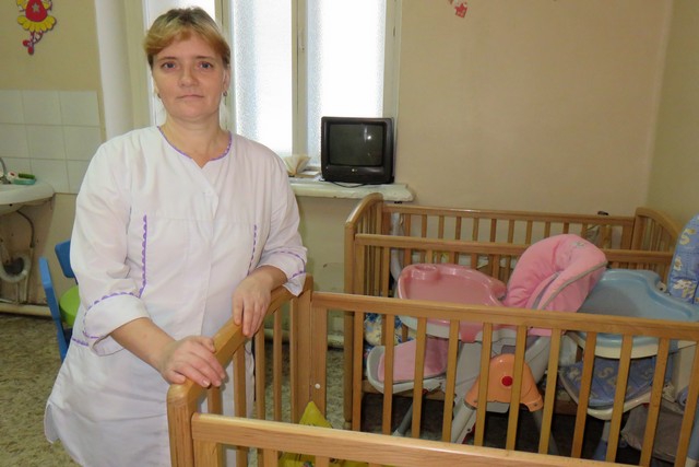 Работы у нее здесь – выше головы. В палатах лежат детки от рождения до 15 лет. Санитарочка помогает медсестре выполнять процедуры: брать анализ крови, промывать желудок при отравлениях, поддерживает в палатах чистоту, ухаживает за больными.