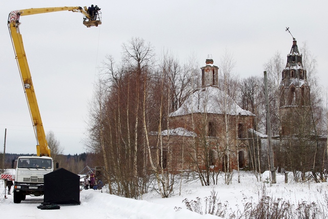 Церковь с покосившимся крестом не раз попадает в кадр.