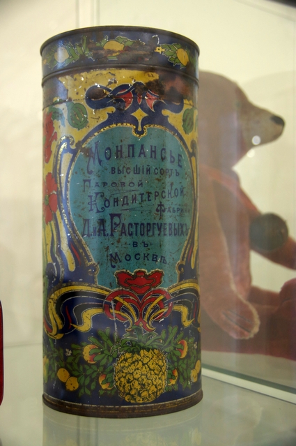 В отдельной витрине можно полюбоваться на конфетные обертки, которые, по словам Галины Каревой, в то время были призваны не просто привлекать внимание, но и просвещать: например, выпускались конфеты к юбилею Отечественной войны 1812 года. А в жестяных банках с конфетами уже сто лет назад дети находили небольшие игрушки: такой вот «Киндер-сюрприз» начала прошлого века...