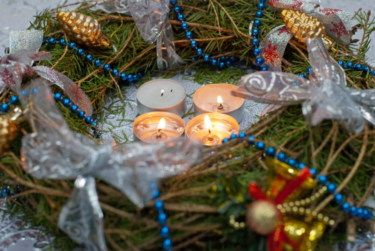 Четыре свечи в венке символизируютчетыре недели до рождения Иисуса Христа.