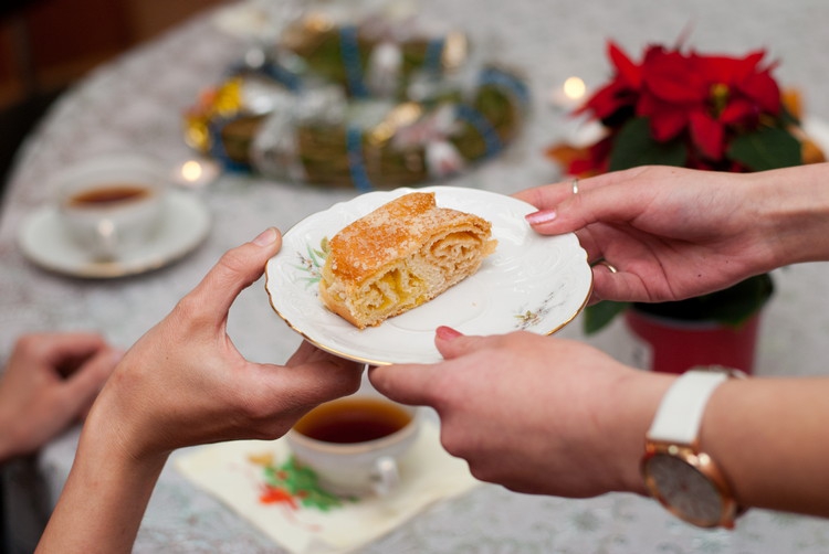 По словам ее дочки Эмилии, к праздничным лакомствам можно приступить только тогда, когда все присутствующие «преломили облатки»: угостились тонкими пресными лепешками, выпекаемыми в храмах. Отламывая кусочки облаток, немцы поздравляют друг друга с Рождеством и желают всего самого лучшего…