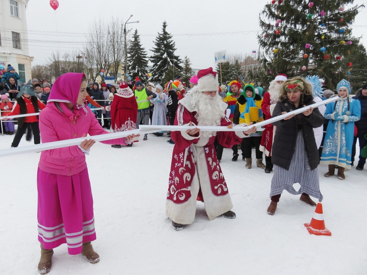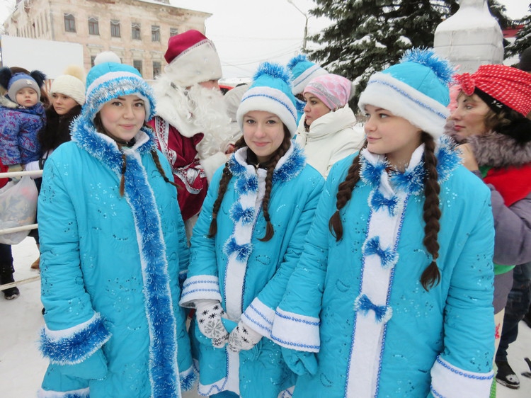Родниковцы и гости города полюбили костюмированное шествие к главной елке города, где проходят конкурсы «Дед Мороз – чемпион» и «Дед Мороз – волшебник». Деды Морозы, Снегурочки, сказочные персонажи и все желающие идут под звуки оркестра с шарами, транспарантами, выкрикивая речевки и дразнилки. В этом году их путь проходил через волшебную аллею, которую оформили снежными скульптурами.