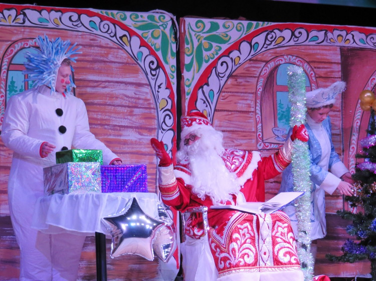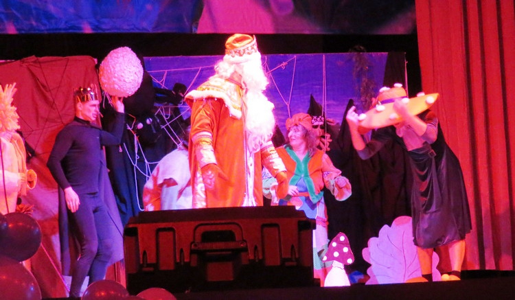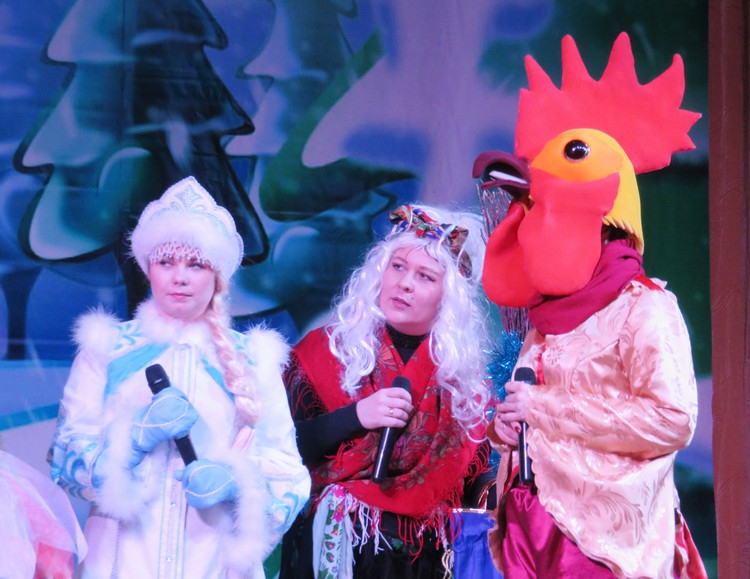 Как всегда, зрителей восхитила игра родниковских артистов, особенно экспрессия работника Дома культуры Василия Виноградова, который выступил в роли Мухоморовны. Хороши были и декорации сказки: каморка лесной нечисти – Кащея, Лешего, Бабыяги – на дне старого колодца, с паутиной из каната, висящими на ней пауками. В противовес темной каморке нечисти резиденция Деда Мороза была оформлена в ярких красках русского народного стиля.